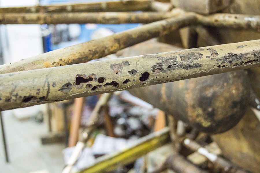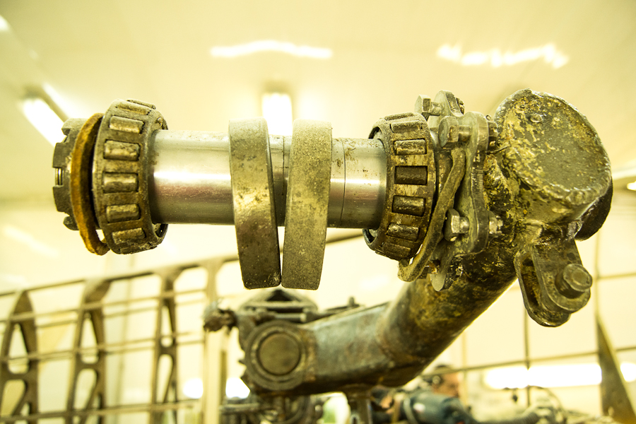 Не менее удивительно состояние стойки шасси: подшипники хоть сейчас смазывай и в работу, лишь амортизационную стойку зафиксировали, она все равно не пригодится, поскольку программа восстановления не предполагает доведение этого самолета до летного состояния