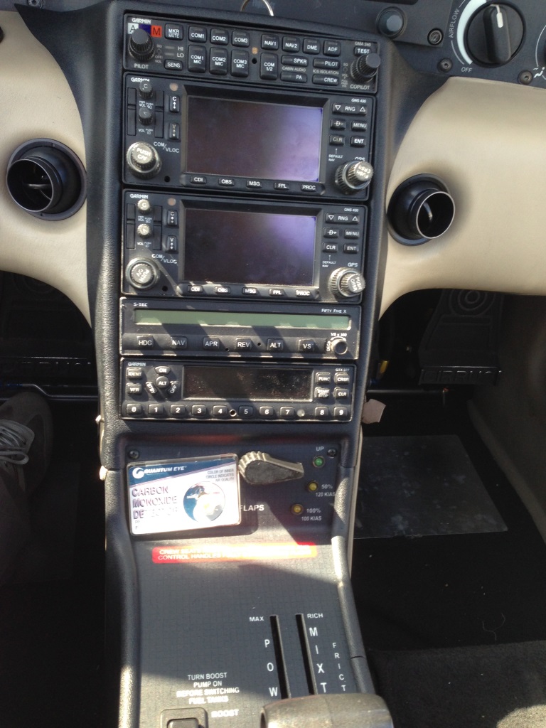 Но самолет стоит того. Как BMW. Очень комфортная посадка, кресла эргономичные, всем пассажирам в кабине будет комфортно. Ремни с автоподтягом, вообщее не давят и не стесняют движения. Очень эргономичная кабина. Ну а приборы! Как будто аэробусом управляешь. Вся выведено на два glass-screena. Левый отображает основные параметры полета, правый- меняется между параметрами двигателя и топливной системы, навигационной системой, check-листами и всяческими подсказками в полете. Еще отдельно два GPS, они же TCAS, два NAV и два COM радио. Очень понравилась система, визуально на экране подсказывающая до какой степени обеднять смесь, измеряющая температуру в каждом цилиндре (если я правильно понял) и показывающая, как при этом меняется получаемая мощность. Угол лопастей меняется автоматически в зависимости от скорости...
