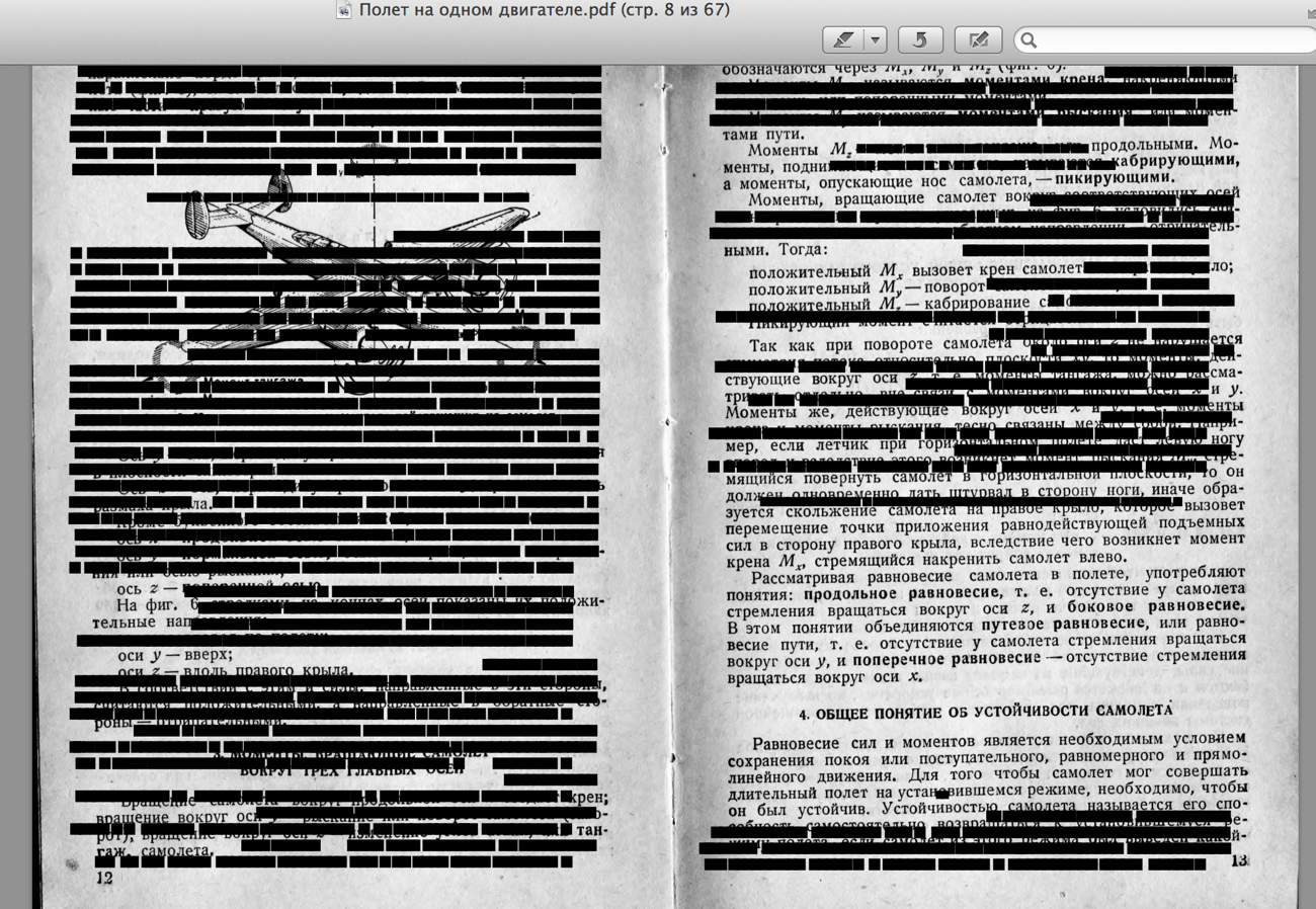 У меня такая же фигня на айпаде. Качай на комп с "нормальным" PDF Acrobat. Откроется нормально.Chestr писал(а):Скачал файл, но что то в нем не в порядке... С 7й страницы и до конца вот такая "цензура"...