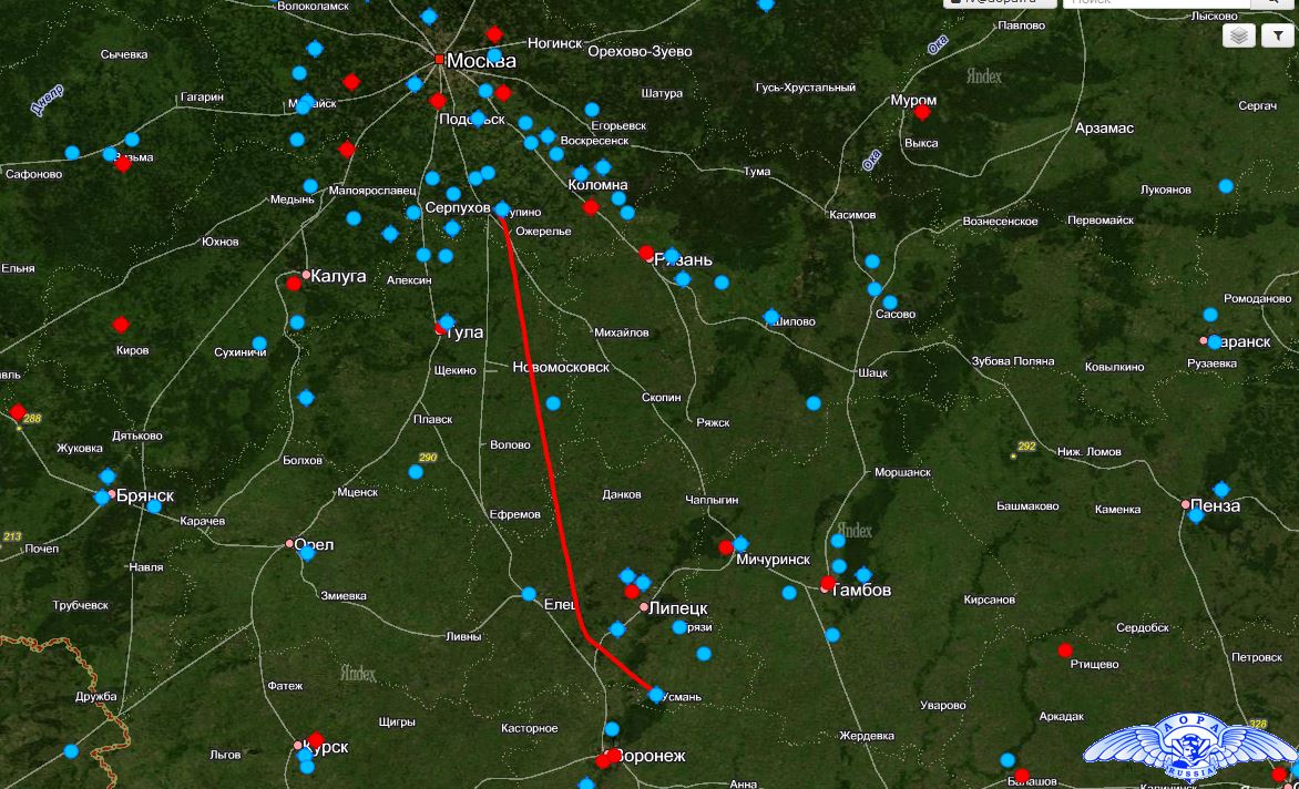 Маршрут полёта Ступино-Усмань. Заходим на посадку в Усмань. (Воронеж).