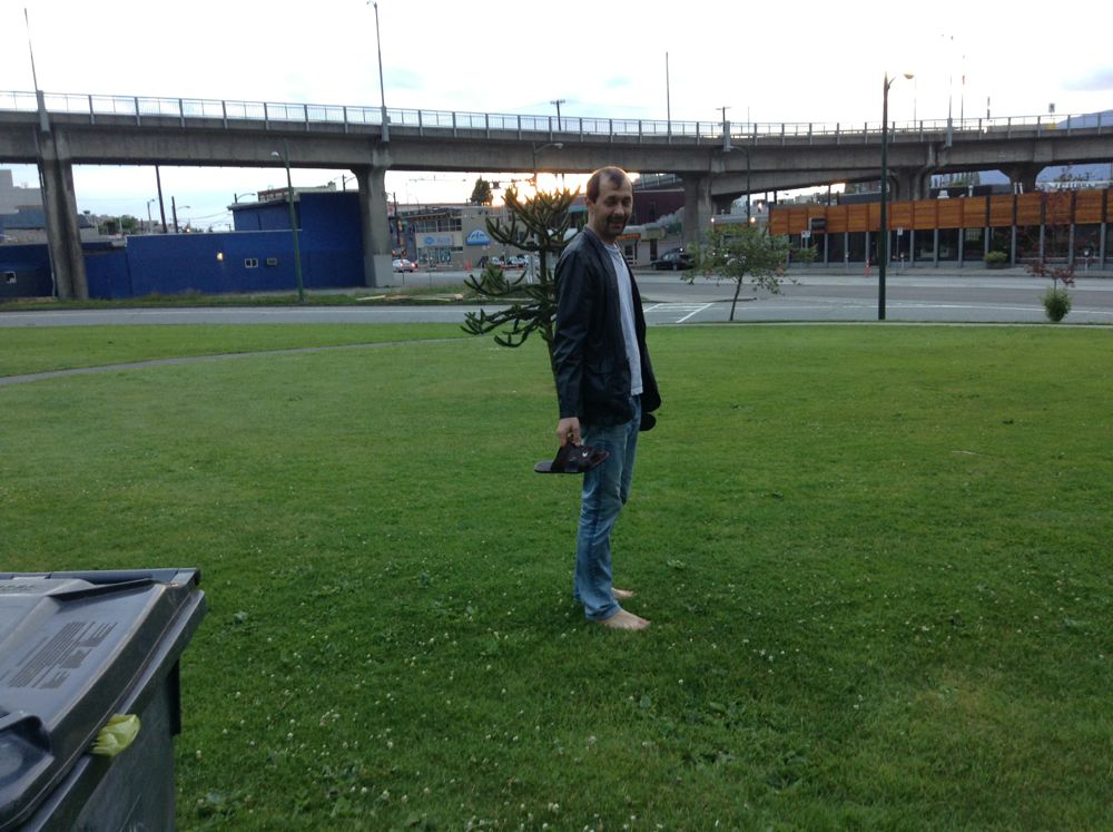 После этого Олег гуляет босиком по центру столицы British Columbia...