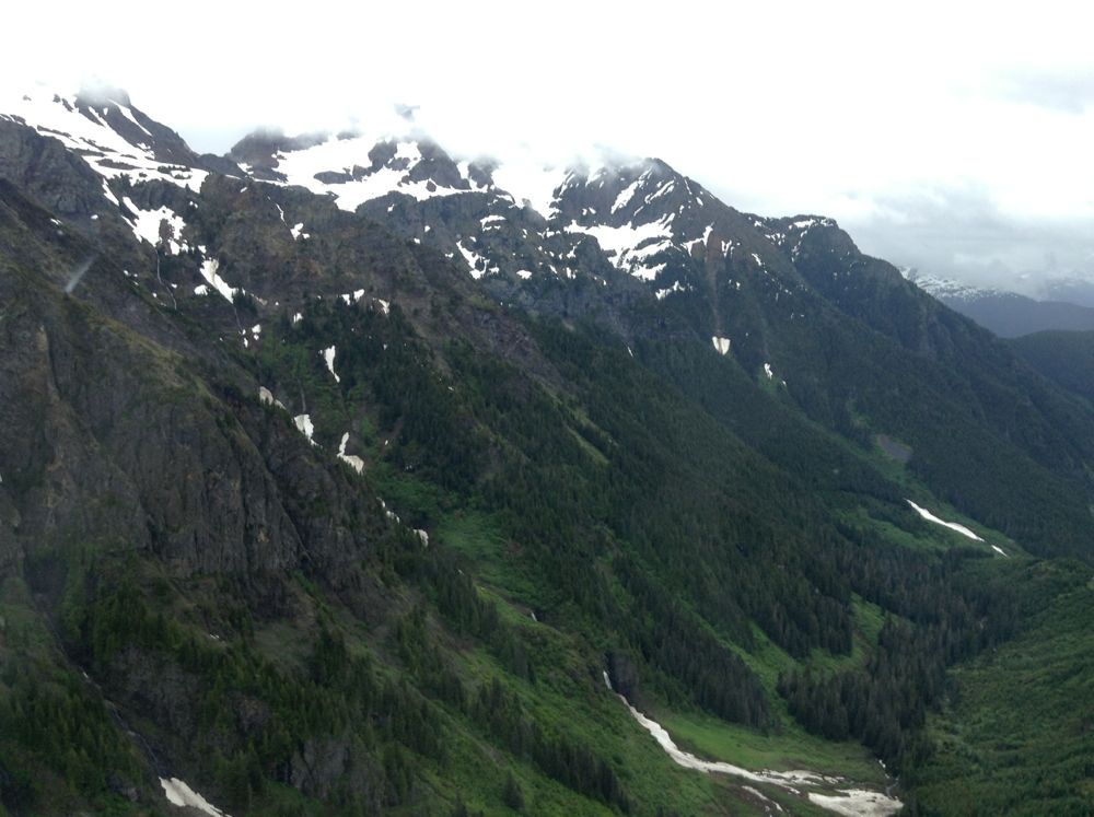 Сегодня погода была чуть получше - но не CAVOK. Впрочем, я же не на курорт сюда ехал - хрен ли мне погода? Опять полетел с Крейгом в горы. Взял с собой айпад для съемок. Садились с разными типами заходов - Крейг запланировал заход на седловину между двух вершин. Сказал, что это может оказаться самым сложным. Если vova_k не шутит - то это он спровоцировал: якобы, сказал Крейгу, что с моих слов - это все семечки... А может, Володя и пошутил - и Крейг просто решил, что пора меня проверить на вшивость... В общем, пока мы до седловины дошли, я сделал пару-тройку посадок на разные площадки: как бревенчатые, так и на грунт (на снег). Крейг, вроде, обошелся без серьезных затрещин и оплеух. По паре моих заходов он вообще сказал, что сам сделал бы точно так же и что это - "very good job!" Ну а на седловину я сам с первого раза не сел ни хрена - там очень хитрая наука с ветром и направлением захода.