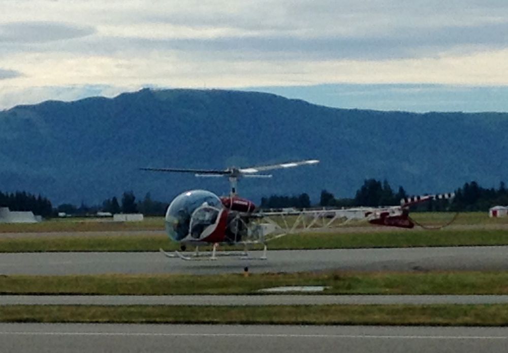 Ангар "Чинук Хеликоптерс" на аэродроме Abbotsford (CYXX). Это - вид на их АТБ На этом Белл-47 я вчера полетал ознакомительно Ну и несколько посадочек сегодня - Крейг сам предложил мне сидеть в вертолете, а он с моим айпадом меня пытался снаружи снимать. Понятно, что летать у него гораздо лучше получается, но уж что вышло...