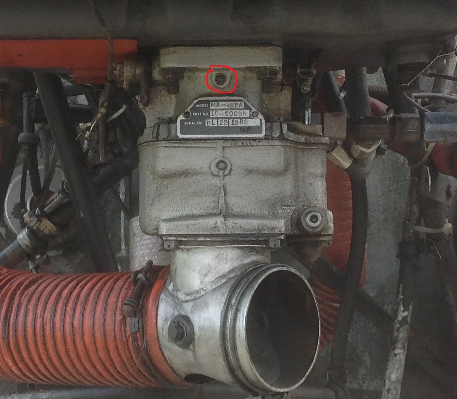 Подскажите, пожалуйста, неразумному. Занимаюсь рукоблудием... а именно... Купил себе Piper PA-28-140 (большую помощь в приобретении, а главное безвоздмездную оказал Buddu, за что огромное спасибо). Стала задача установить датчик контроля льда в карбюраторе. Карбюратор вот такой как на фото. Датчик, как я понял, ставиться в отверстие вверху (отметил красным), но там залитая заглушка. Смотрел другие карбы, на них стоят съемные заглушки. Стало быть в моем случае нужно просверлить и нарезать резьбу? Может у кого есть документация на этот карб, не жалко если.