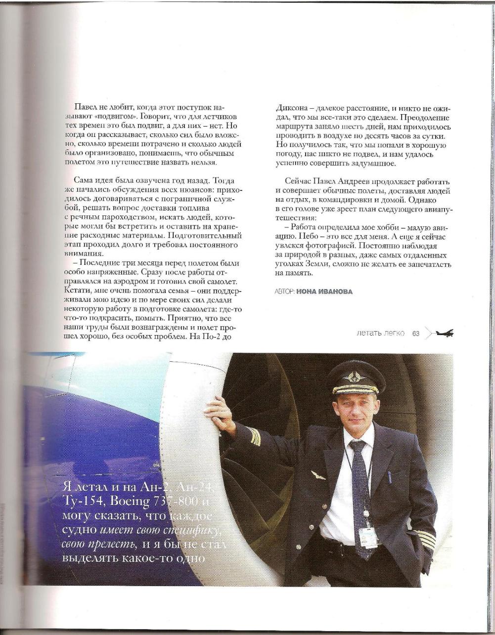 Статью в журнале серьезно не воспринимаю - однобокая, в перелете до Диксона участвовал не я один. Внимания достойны все кто участвовал и готовил операцию.