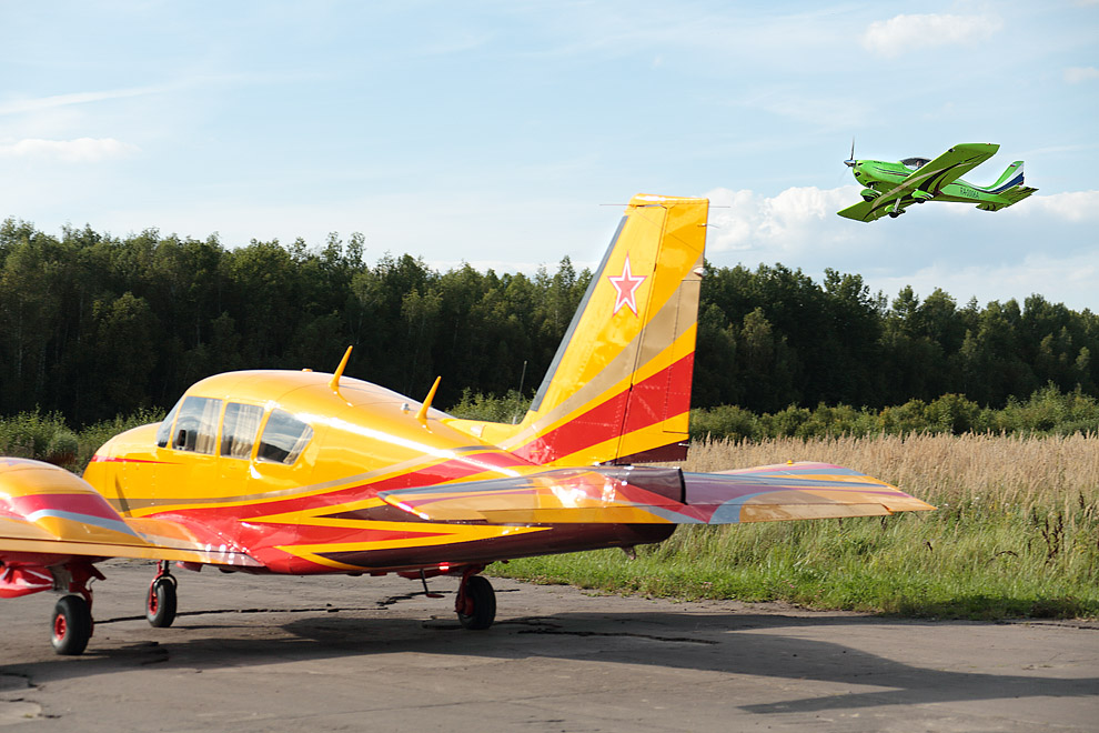 Вот в небе показывается теперь уже известный по другим темам форума Пайпер, с тем же экипажем. На борту - гость из Франции - Эрве де Сент Экзюпери.