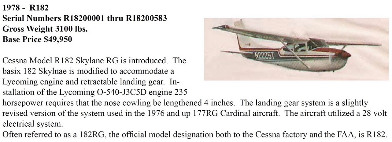 На сайте и в рекламных документах производителя указаны модели С-182 доступные для установки Канарда, это 1970 – 1986 года, модели N, P, Q, R. За эти 11 лет было произведено 7700 обычных (с фиксированными шасси) С-182-х, есть из чего выбрать.