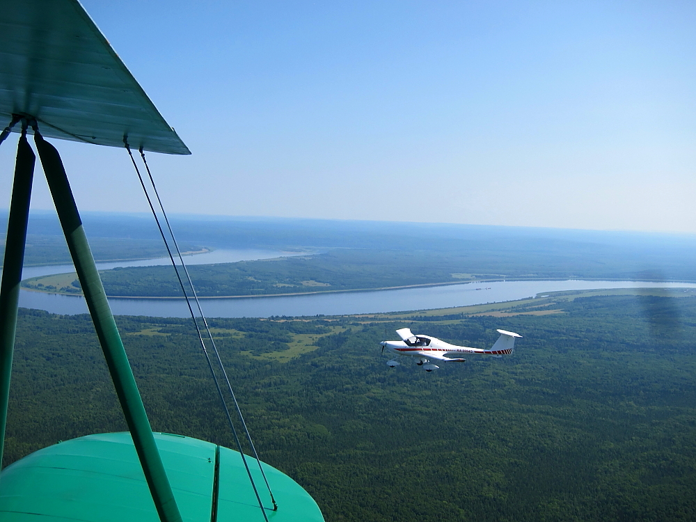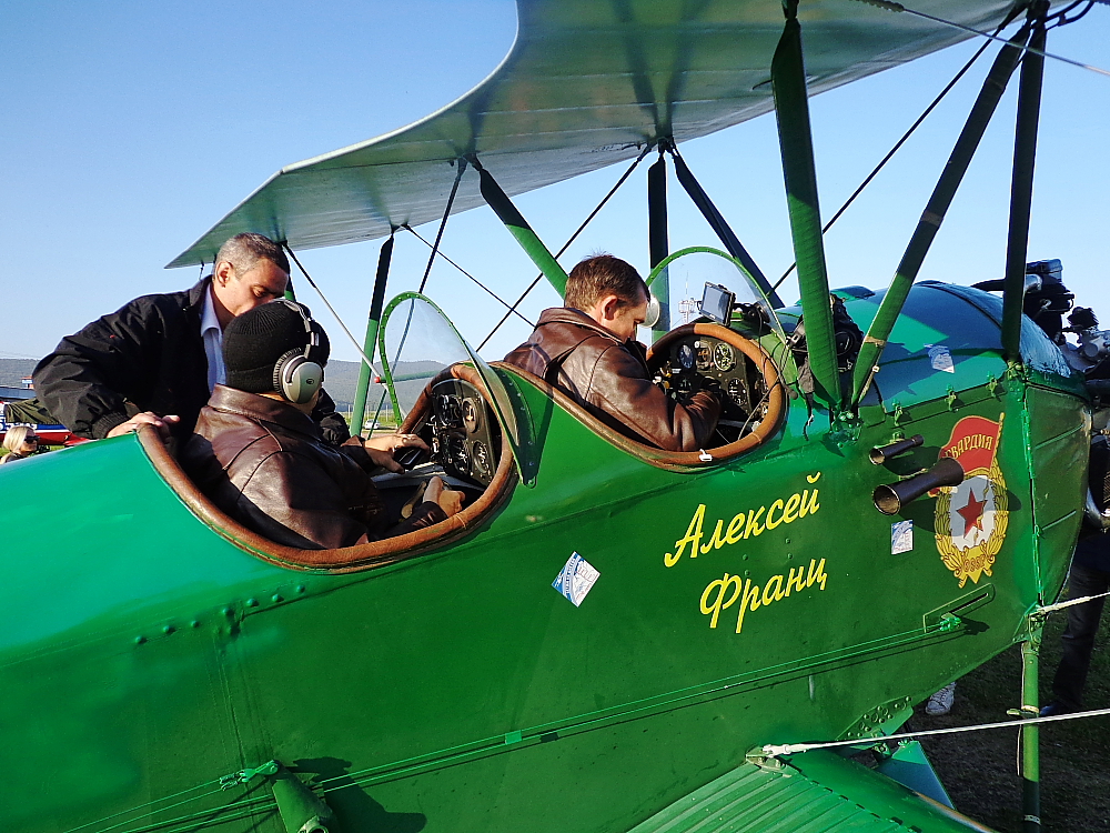 Блин, на утренние сборы я опоздал. Несмотря на звон будильника, из-за сдвига часов и насыщенного прошлого дня не смог встать вовремя и пришлось прыжками догонять По-2, улетающий на Диксон :) Не попал в кадры съемок телевизионщиков, ну и ладно.