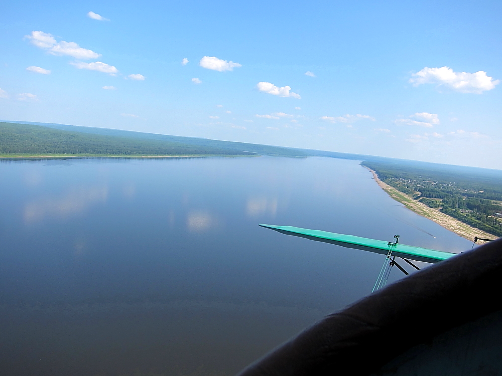 Летим на Енисейск. Расстояние в 280 км прошло незаметно, солнце поднималось и пригревало. Наша путевая скорость составляет около 120 км, что при хорошей погоде доставляет массу удовольствия от полета.