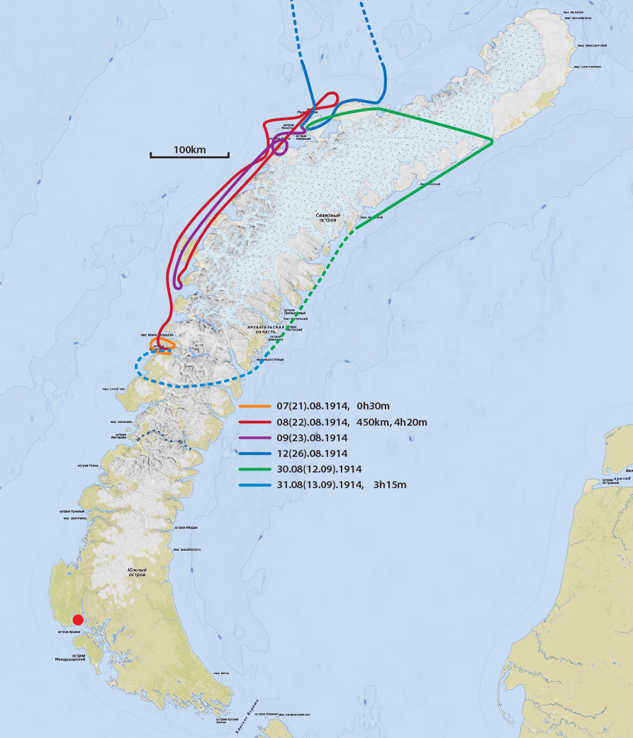 Решил прикинуть как и куда летали по дням. Получилась такая приблизительная картинка. Может быть кому нибудь будет интересно. Все, конечно условно, линии проходят приблизительно через упоминаемые объекты. Там где линии пунктирные - совсем нет промежуточных данных - только места вылета и посадки и направления.