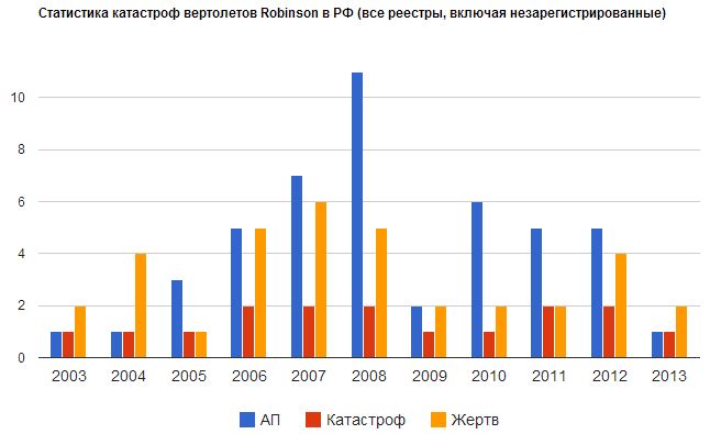 За всё время эксплуатации робинсонов в РФ (с 2003 по 2013 включительно):
