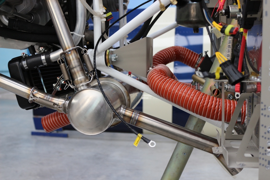 на Viper SD-4 нет глушителя от ротакс, там полностью заново изготовленный глушитель с мощным теплообменником, очень аккуратно изготовленный, который с большим запасом выдает нужное количества тепла как в салон так и в карб.