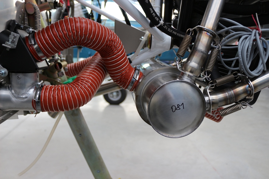 на Viper SD-4 нет глушителя от ротакс, там полностью заново изготовленный глушитель с мощным теплообменником, очень аккуратно изготовленный, который с большим запасом выдает нужное количества тепла как в салон так и в карб.