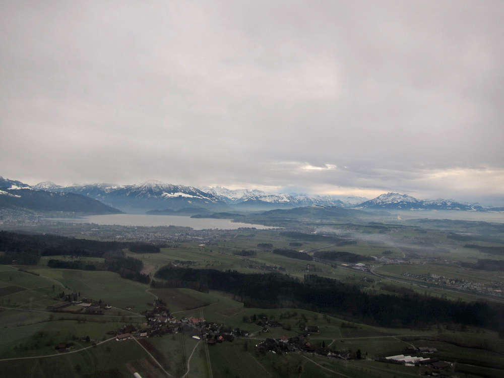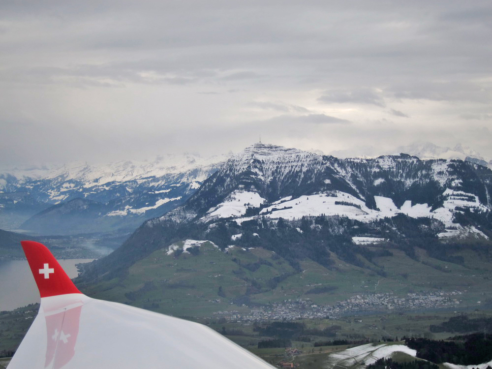 Взлёт из Wangen Lachen. LSPV-LSZE "рулил" я Над Цюрихским озером Взгляд назад. Забираемся к горе http://www.saentisbahn.ch/en.html Säntis У этого ряда пиков интересное название, но я его забыл. Я. Самолёт как-то с трудом забирался, всё же мощщи не так много. Спасибо знакомому за возможность полетать в горах - я всё ещё чувствовал себя слегка с дискомфортом За горой, в долине - соеднее государство. Лихтенштейн. Разворот в нужную долину. И на спуск. Весьма заковыристый заход на посадку. С одной стороны - холм с замком, из-за которого глиссада достаточно высоко; с другой стороны - лес и высоковольтные провода. Как там пипль летает в жаркий летний день, да ешё с http://en.wikipedia.org/wiki/Foehn_wind фёном Final Тот самый замок. Взгляд с конца полосы. Фактически, final approach был в развороте. Die Russen sind da! Таким образом, мы сделали небольшой крюк, чтобы облететь Säntis. Дорога обратно - через Wallensee, Sattelegg, Ägerisee.