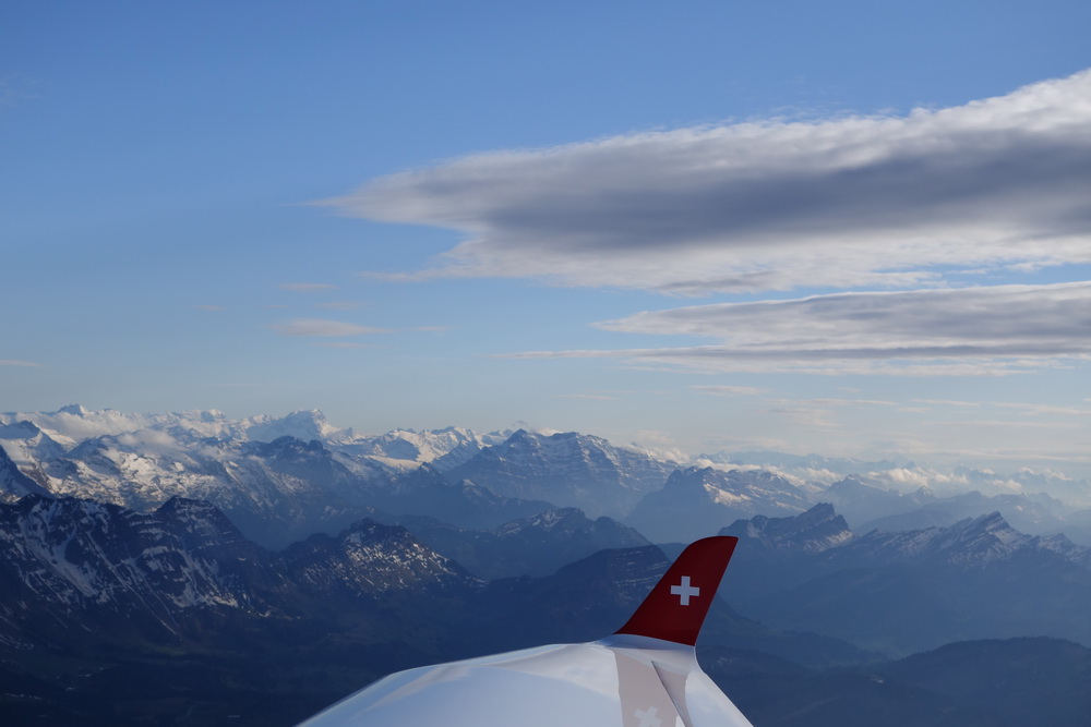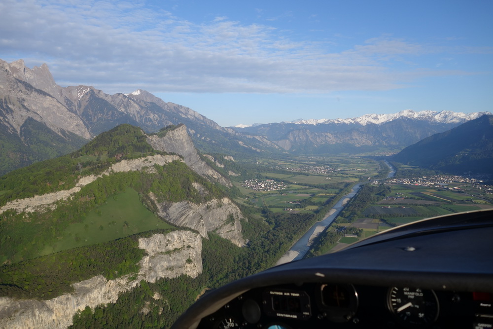 Взлёт из Wangen Lachen. LSPV-LSZE "рулил" я Над Цюрихским озером Взгляд назад. Забираемся к горе http://www.saentisbahn.ch/en.html Säntis У этого ряда пиков интересное название, но я его забыл. Я. Самолёт как-то с трудом забирался, всё же мощщи не так много. Спасибо знакомому за возможность полетать в горах - я всё ещё чувствовал себя слегка с дискомфортом За горой, в долине - соеднее государство. Лихтенштейн. Разворот в нужную долину. И на спуск. Весьма заковыристый заход на посадку. С одной стороны - холм с замком, из-за которого глиссада достаточно высоко; с другой стороны - лес и высоковольтные провода. Как там пипль летает в жаркий летний день, да ешё с http://en.wikipedia.org/wiki/Foehn_wind фёном Final Тот самый замок. Взгляд с конца полосы. Фактически, final approach был в развороте. Die Russen sind da! Таким образом, мы сделали небольшой крюк, чтобы облететь Säntis. Дорога обратно - через Wallensee, Sattelegg, Ägerisee.