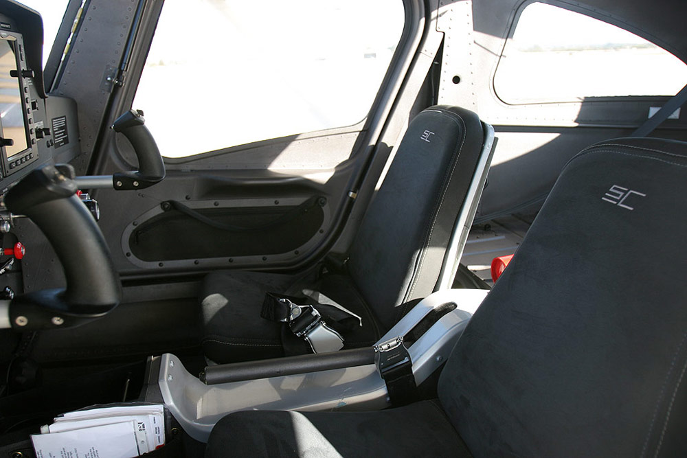 Сидения не регулируются. Можно двигать педали вперед-назад. Внутри никакой отделки - просто крашеный металл. Рычаг между сидениями - управление закрылками. С фиксатором в виде кнопки как на ручном тормозе в автомобиле.