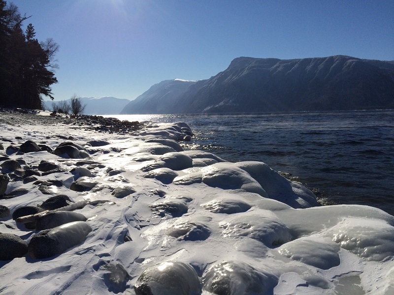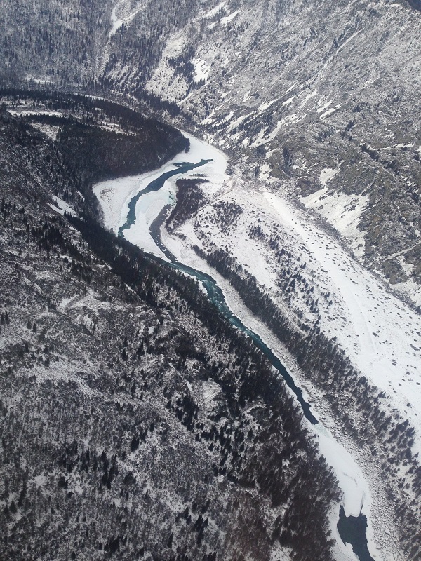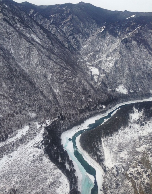 "В средней и верхней части Катунь как бы прорезает зеленокаменную формацию песчаников. Они и дают реке бирюзовый оттенок. Самая прозрачная и бирюзовая вода в Катуни бывает зимой. Ее вы увидите в местах, где река не замерзает, - на порогах. Катунь все-таки единственная в Алтайском крае река с необычным цветом. Остальные по сравнению с ней смотрятся серо. В прямом смысле этого слова." (с)