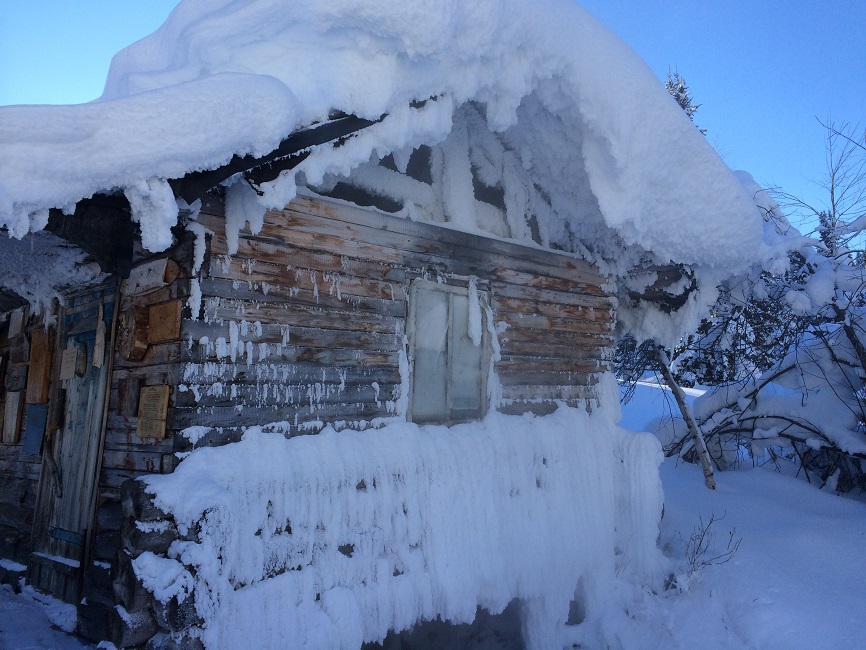 В таких домиках вместо шалашей живут современные пациенты источника. Удобства "унисекс" на улице. И на деликатном удалении (метров 50 в глубь тайги).