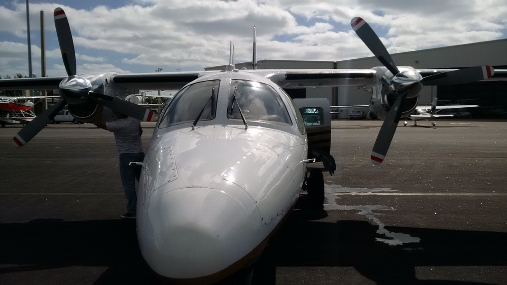 Саня начал его осматривать, потом посмотрел в маленьком лючке какой-то уж очень маленький щуп с маслом, покрутил по очереди винты и засел за компьютер подавать план полета. Как я понял полетим мы не на прямую а через Вера Бич, что бы пополнить запасы керосина.