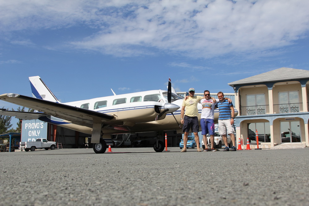 До конечной точки- Сан Мартен по нашим расчетам было пять часов летного времени, замеренный нами расход топлива сводился к средней цифре между 38-40 галлонов в час, баки на Пайпере вмещали всего 200 галоннов. Было ясно , что топлива нам не хватит и необходима дозаправка. Самым привлекательным для этого местом были острова Туркс и Коикос расположенные примерно на половине пути, севернее Гаити. От Нассау до Кокосов получалось часа два и еще три часа до Сан Мартен. Понятно дело чо прилететь хотелось засветло, еще бы! Проделать такой путь и сесть на знаменитую полосу ночью? Даже не обсуждалось. Мы собрали манатки и вышли встречать такси. Наше пребывание на Багамах было не долгим. Еще пару фотографий по дороге и мы на месте. Таможенный контроль, план полета и вот мы уже сидим в самолете. Сразу вылететь у нас не получается, пропускаем несколько бортов стоя на у полосы. Дальше все по плану, -взлет и курс на Какосы, напрямую.