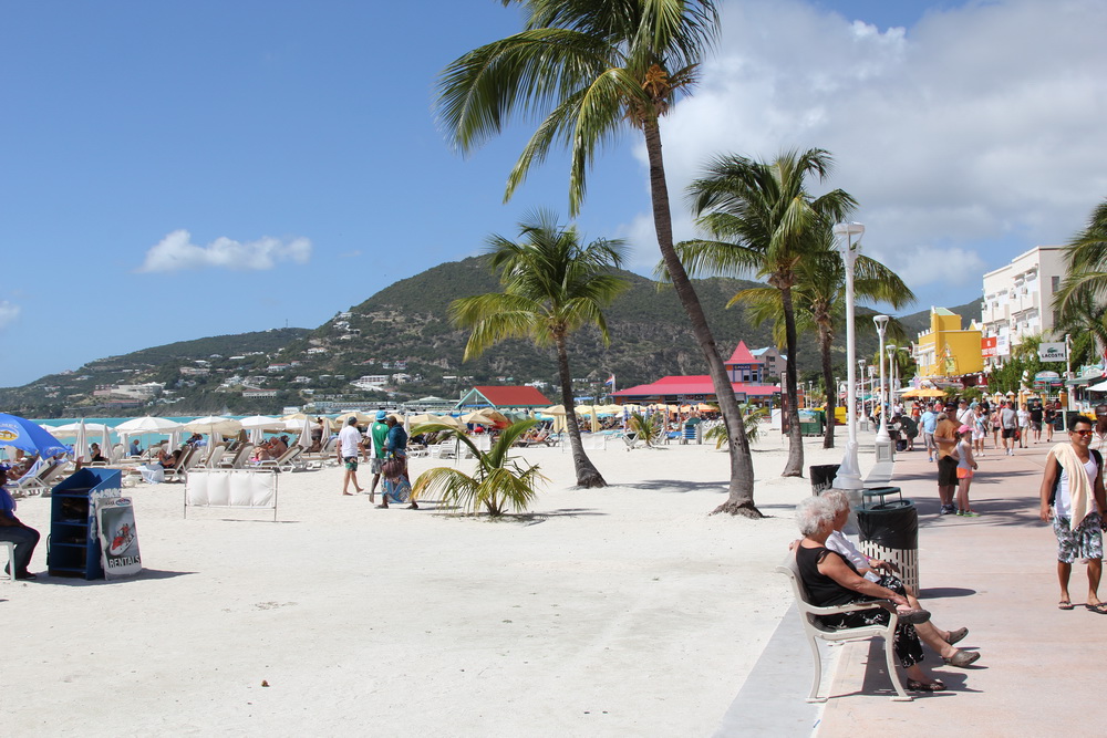 Надеюсь не надо обьяснять- куда и почему мы отправились на следующий день, правильно… на тот самый пляж! Но Егор поступил благоразумнее, он посмотрел расписания прилета и улета рейсовых KLM и AA , которые собирают самую большую аудиторию и мы решили не торчать там весь день, ожидая прилета «больших». Мы поехали на экскурсию в Филипсбург- местную столицу нидерландской части острова. Добраться туда было очень просто, мимо нас ходили маршрутки, одну из которых мы и поймали , стоимость проезда в которой была 1,5 на человека, что нас обрадовало и опустило на землю, поближе к народу.