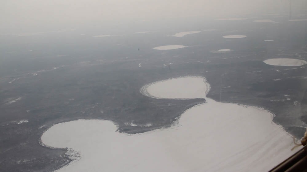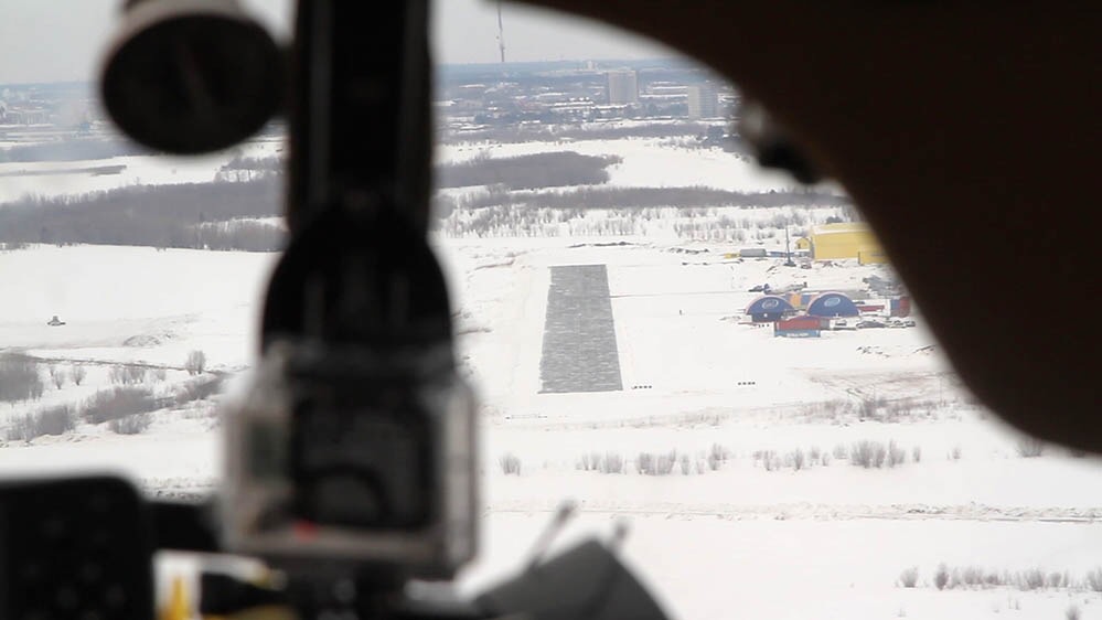Заход и посадка. Аэродром на острове Заячий. Скоро сюда можно будет попасть только на лодке, но снег закончит таять только в августе :shock: