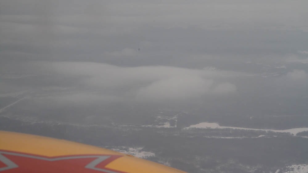 Одной из причин почему я точно не хотел шлепать в первый день до Сургута был длиннющий фронт проходящий между Тюменью и Сургутом и накрывавший так же и Сургут. На ночь глядя точно не стоило туда переться. На следующий день фронт как и обещали никуда не делся. Правда Сургут был уже открыт, но между Тобольском и Сургутом нас так же ждали условия около 30Х500 шириной около трехсот километров. При температуре у земли около ноля. В общем неприятненько... Запасным на этом маршруте могла быть только Тюмень, состояние полосы в Тобольске нам было не известно. Но на крайний случай тоже рассчитывал. Как и обещал прогноз сразу за Тобольском на самом безжизненном участке маршрута нас встретила стена от земли и до пяти тысяч метров. Со снегом и провисанием облачности до земли. Выставив предупреждение по высоте на Гармине 500 и радиовысотомере на выданные нам безопасные триста метров мы вошли в зону фронта. На минимально безопасной, тем более не противоречащей правилам высоте, обледенение было очень слабым и я решил выше не лезть. В самолете сразу после входа в зону фронта стало совсем тихо...))) Больше всего не хотелось, что бы к нашему прилету накрыло Сургут. Но доходящие СМС сообщали, что там практически идеальные условия.
