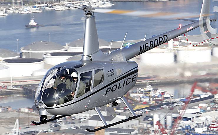 полицейский патрульный вертолёт на базе R66 с дополнительным оборудованием.