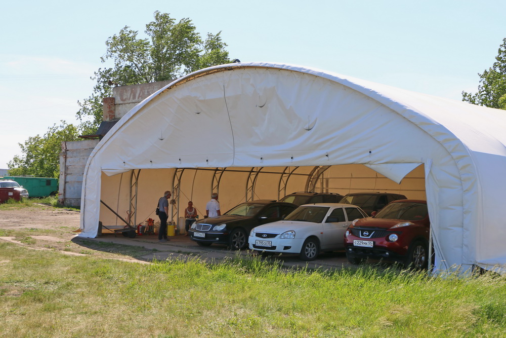 На парковке аэродрома, около двух десятков автомобилей, еще несколько в открытом ангаре.