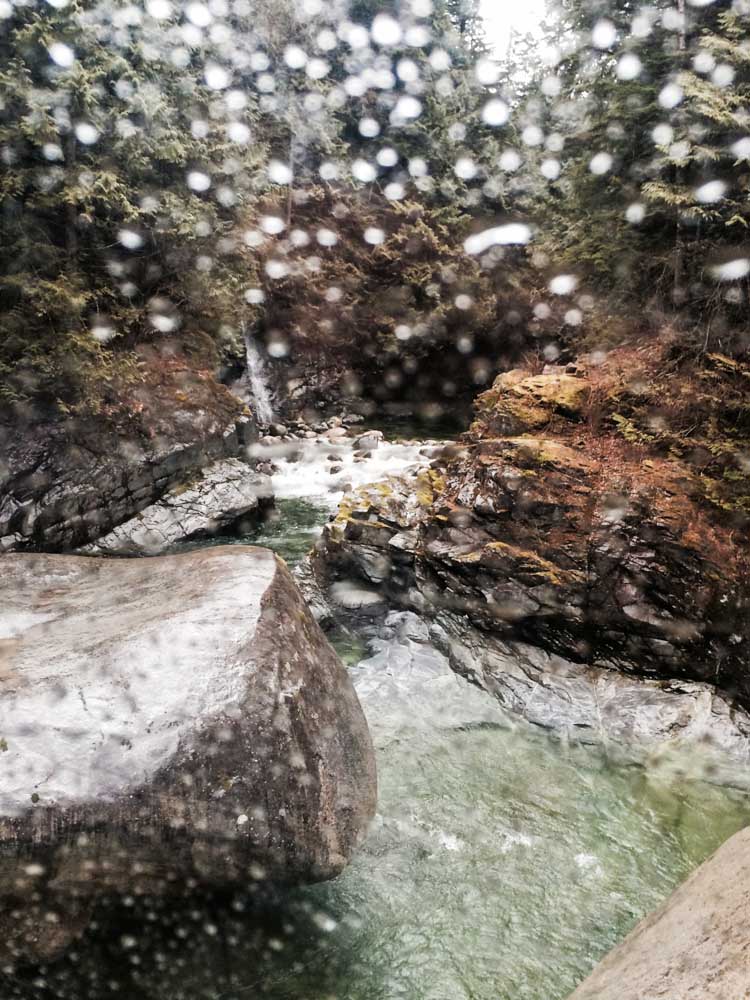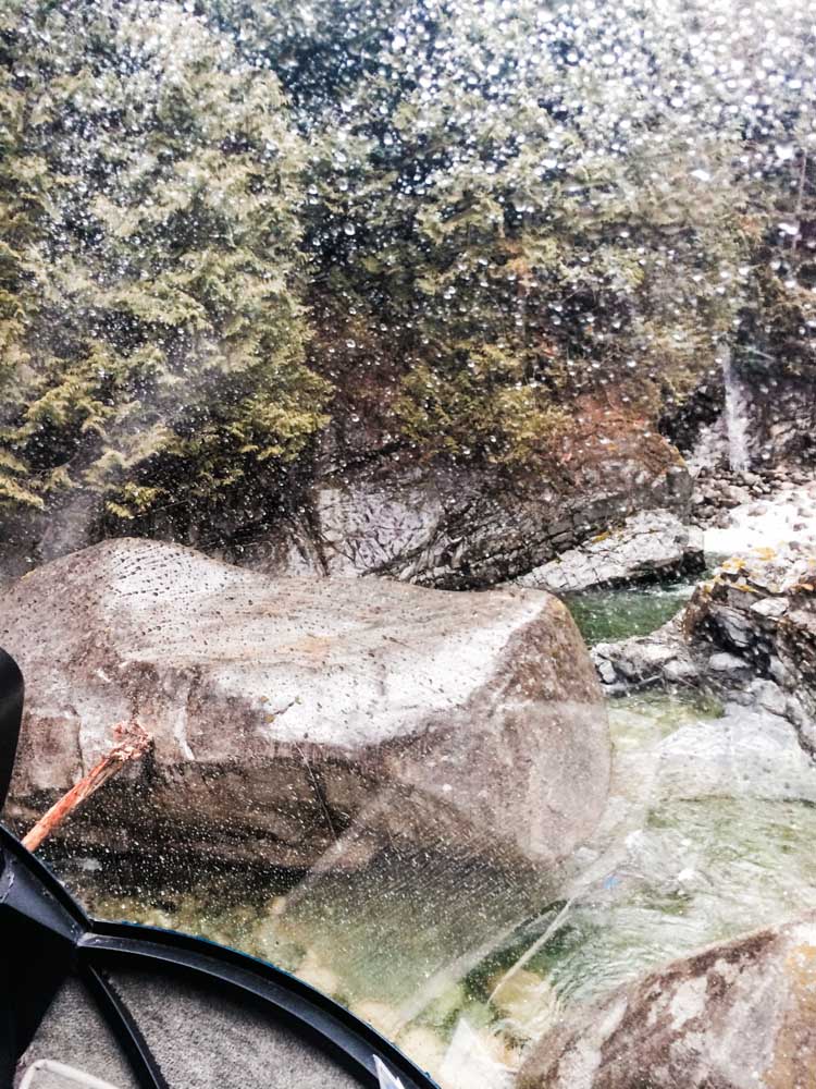 Приземление в "колодец" из громадных елей и с 4 сторон- водопады, посадка на камень.... Красотища необыкновенная и интересно очень все это проделывать...