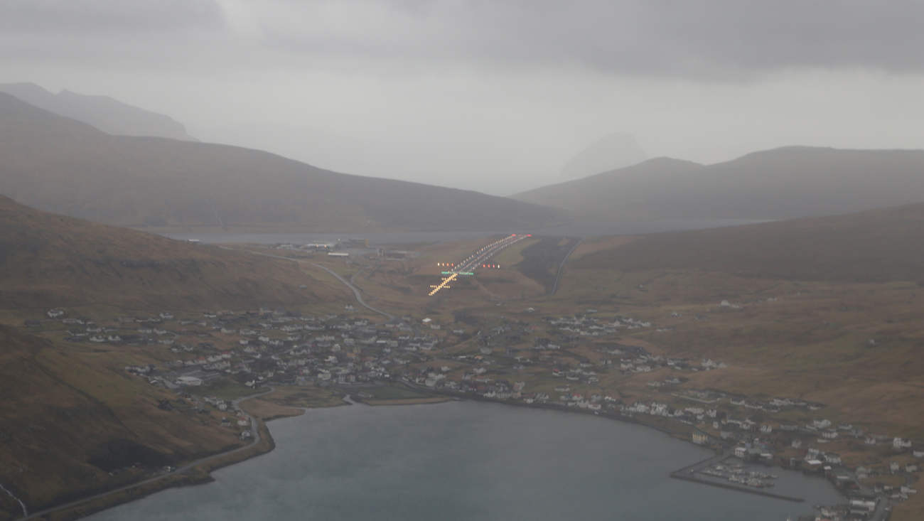 На Фарерах всегда облака. Вообще, я заметил: над морем может быть чистое небо, а на островах лежит одеяло - независимо от широты, от ЮАР до Арктики. Хрен знает почему. На вертолете это, конечно, решается проще. А та гора на глиссаде Вагара - известная хрень...