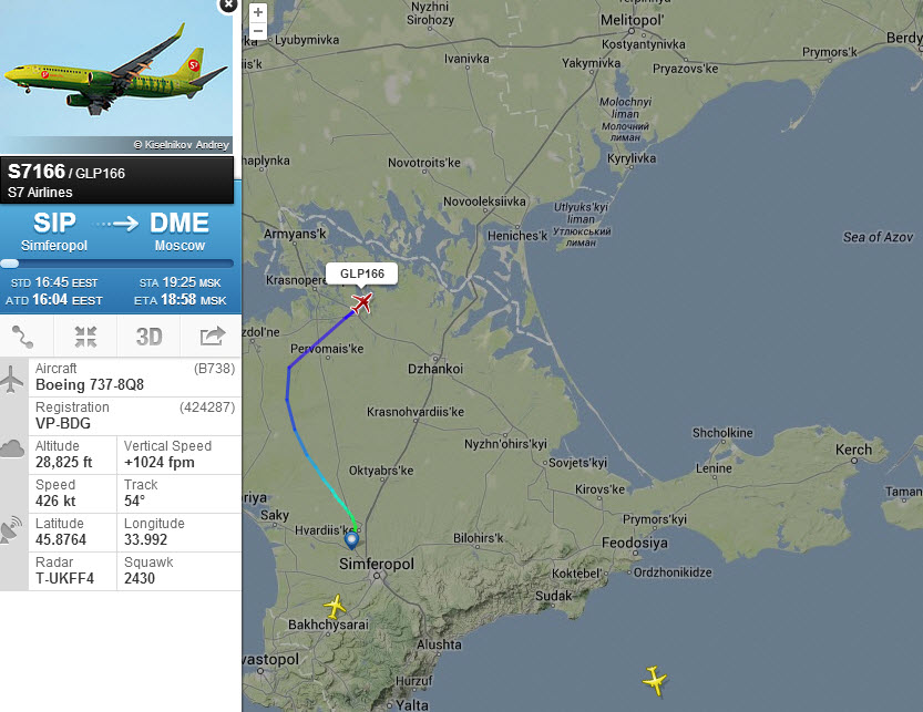 Напомним, воздушное пространство Крыма является предметом спора после вхождения полуострова в состав России в марте этого года. Украинские авиавласти настаивают, что воздушное пространство Крыма остается под их контролем, и распорядились полностью закрыть его для полетов.