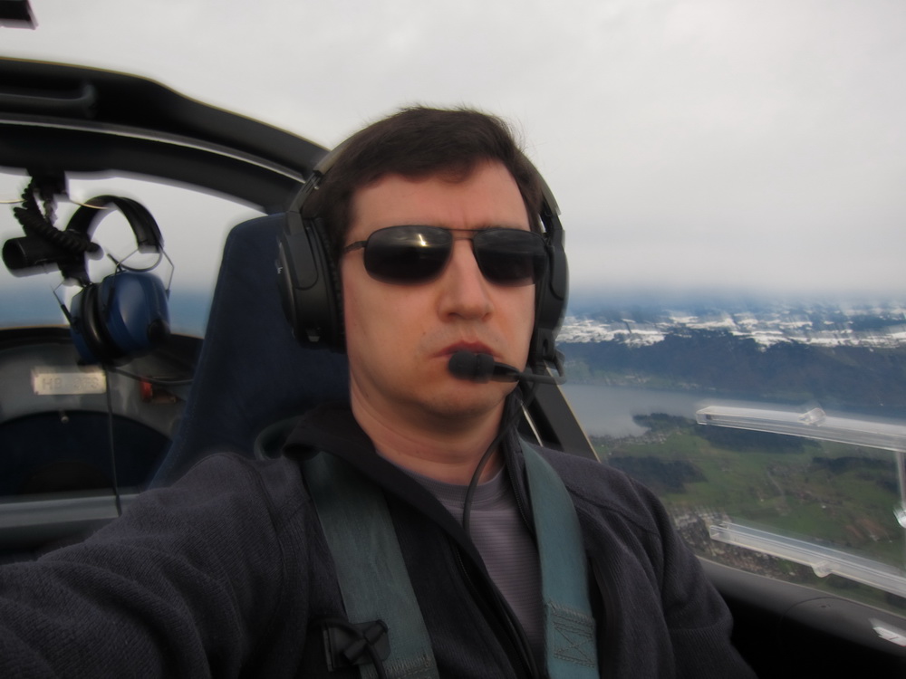 Если присмотреться, тут в кадре виден лес и провода рядом с противоположным концом ВПП. Теперь "рулил" знакомый. Я впервые сидел пассажиром, справа. Странные, и не всегда приятные ощущения. Это всё озеро Wallensee. Сверху кажется весьма небольшим. Цюрихское озеро. Двое из ларца. Заманил знакомого хорошими наушниками. Кто сомневается - зело рекомендую, не надо сомневаться. Искусственное озеро, кстати. http://en.wikipedia.org/wiki/Sihlsee Sihlsee.