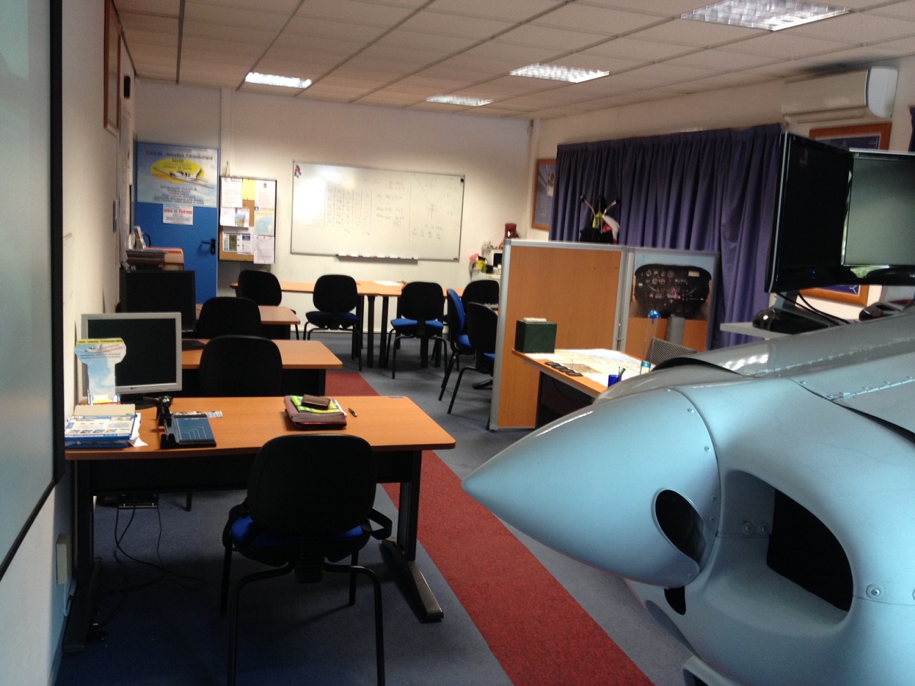 На фото (выше) вы видите наш класс , в школе есть правило- пока не сдал теорию, практически не подходишь к самолету , поэтому в этом классе учащиеся проводят много времени , проводятся занятия , и самоподготовка т.е. вы можете пользоваться классом без лимита приходить в 9:00 и уходить в 18:00,пользоваться также симулятором без лимита , столько сколько вам будет нужно пока вы не отточите свои навыки (очень полезно!) Также и с теорией никто вас не гонит ,занимаетесь в своем ритме нет никакого давления ,если не поняли вам объяснят столько сколько нужно вам ! Также вы не лимитированы по времени ,конечно 5 лет Вас никто держать не будет , но я видел ребят которые прошли программу за 2 года,я имею ввиду человек приходил и занимался когда хотел и получил свой PPL спокойно, видел парня который прошел все за 5 месяцев,а директор школы сказал мне, что могут сделать ускоренный курс заточенный под конкретного ученика рассчитанный на 3 месяца. В школу приходят люди всех возрастов например сейчас со мной учится мужчина которому 70 лет (прошел мед.комиссию №2),есть и ребята от 14-15 лет (учатся в своем ритме и как я понимаю по своей программе так как первый полет соло в школе от 16 лет а сдача экзаменов с 17лет,но учатся и теорию знают очень хорошо ).