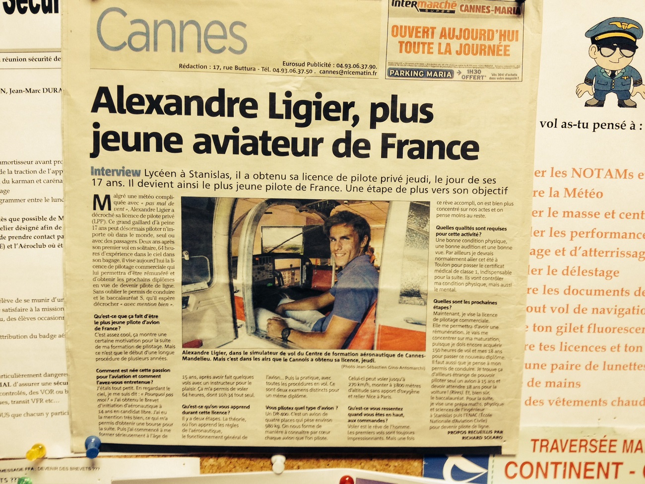 В нашей школе отучился и сдал на PPL ,(получается) самый молодой пилот Франции !!
