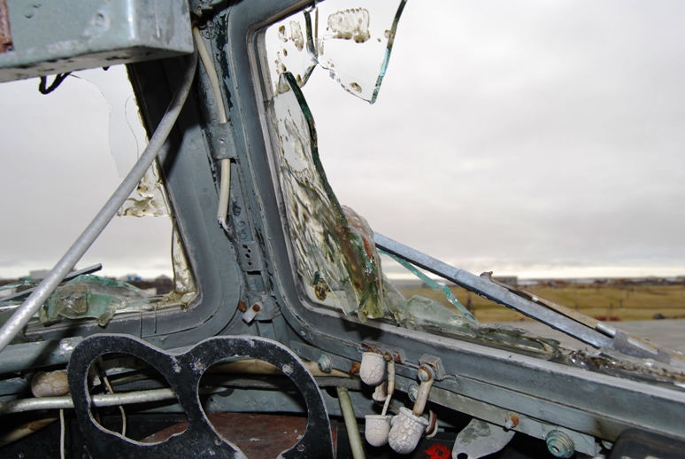 судя по оплавленным стеклам в кабине был пожар.