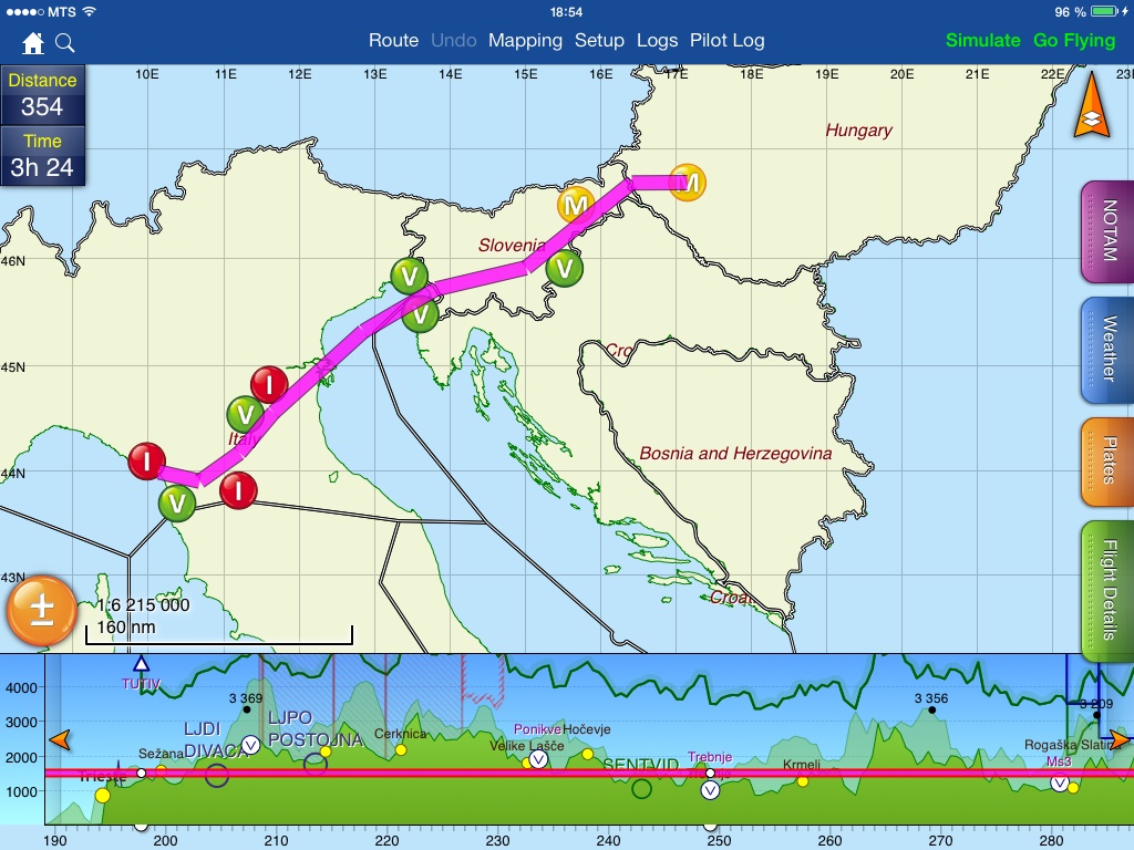 Первый отрезок согласованного через SkyDemon маршрута пролегал между LILQ и LHSM (аэропорт HEVIZ-BALATON) и по расчетам для R44 должен был занять 3 часа 24 минуты.