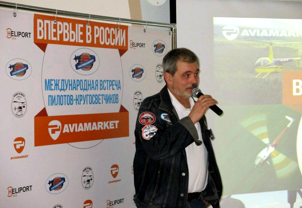 Михаил - ведущий программы встречи, кругосветчик-вертолетчик, коих так немного в истории мировой авиации.