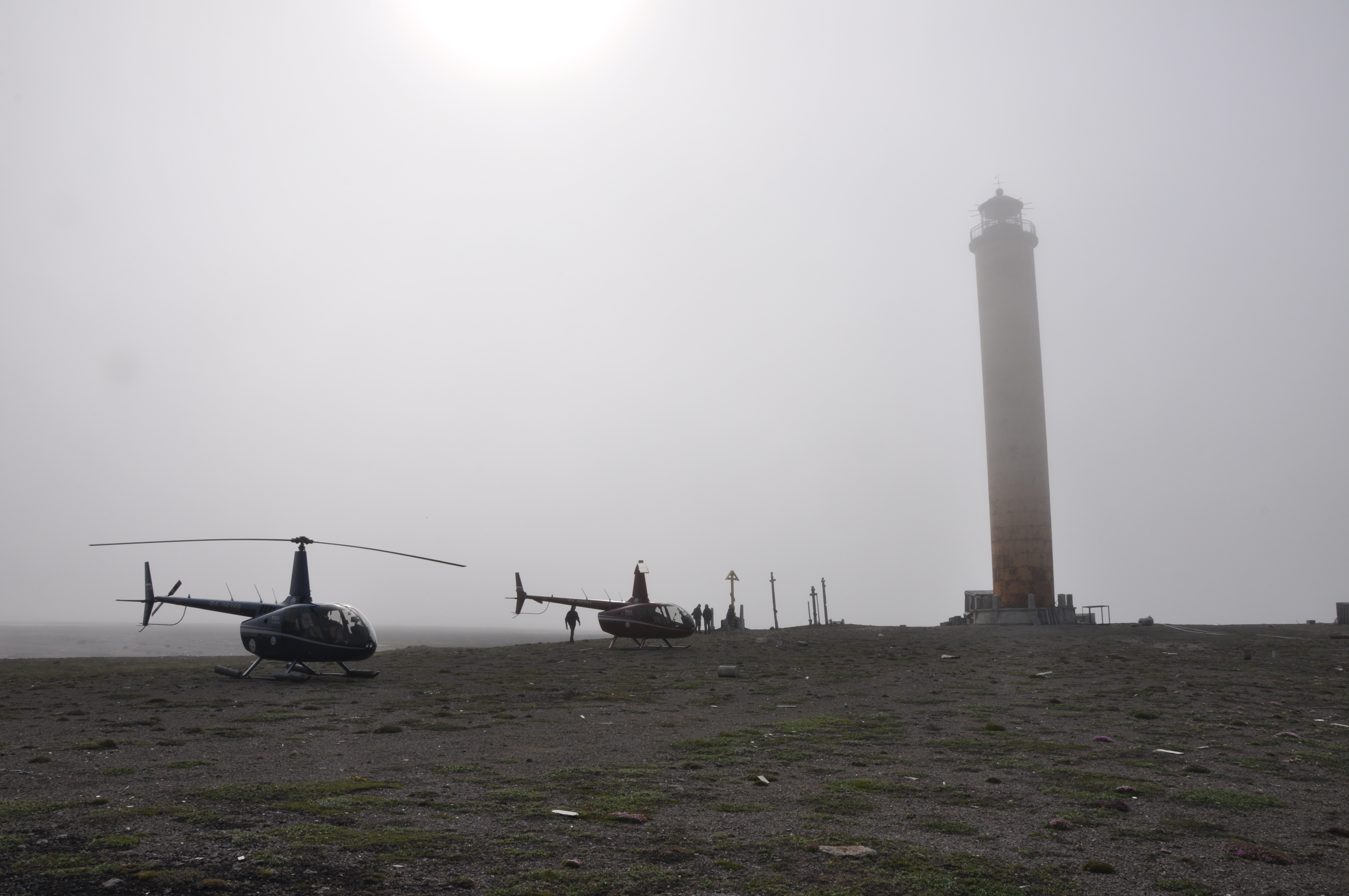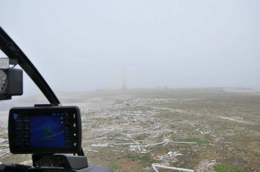 ЛодоШник, как всегда, не подвел - план были одобрен - и примерно в 9:20 мы оторвали, в очередной раз, лыжи от планеты ... Север, по всей видимости не хотел нас отпускать - почти сразу за Амдермой начиналась густой туман ... поэтому сразу поднялись наверх и пошли в направлении острова Матвеев в надежде увидеть моржей которых третья эскадрилья навестила за пару дней до этого ... Misha вспомнил, что он не успел вчера потренироваться полетам с отказами приборов - поэтому пришлось выдать ему "мистическую" десятифунтовую бумажку (а может просто, чтобы он на крупную купюру не отвлекался :mrgreen: ) ... GPS показывал, что до острова оставалась совсем немного - вынырнув наверх для разведки обнаружили, что облачность простирается еще миль на много пошли вниз при помощи радиовысотомера ... на подходах к острову влияние холодного моря немного отступило и остров нежно появился из тумана как изображение на фотобумаге в кювете с проявителем ... :wink: