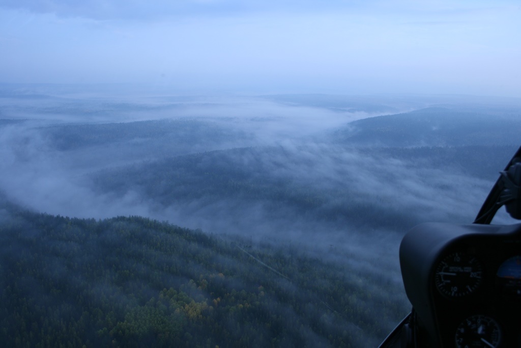 А туман тем временем крепчает и поднимается, но изучение прогнозов на точке продолжает вселять уверенность в наши сердца, хотя уже не так явно. Запас по топливу позволяет нам вернутся в точку вылета с любой точки маршрута, опрос домашних успокаивает - у них погода звенит, бабье лето, золотая осень!
