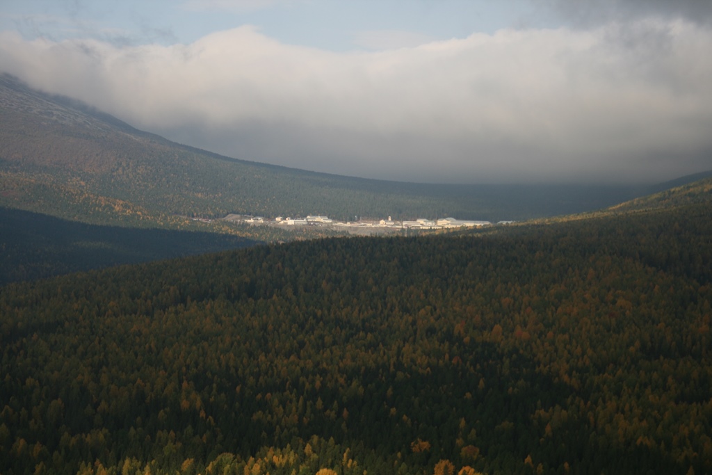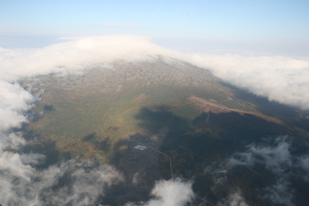 Ветер западный и натягивает туман на горы, но восточные склоны открыты, хотя сами вершины закрыты, к сожалению, Косьвинский камень.