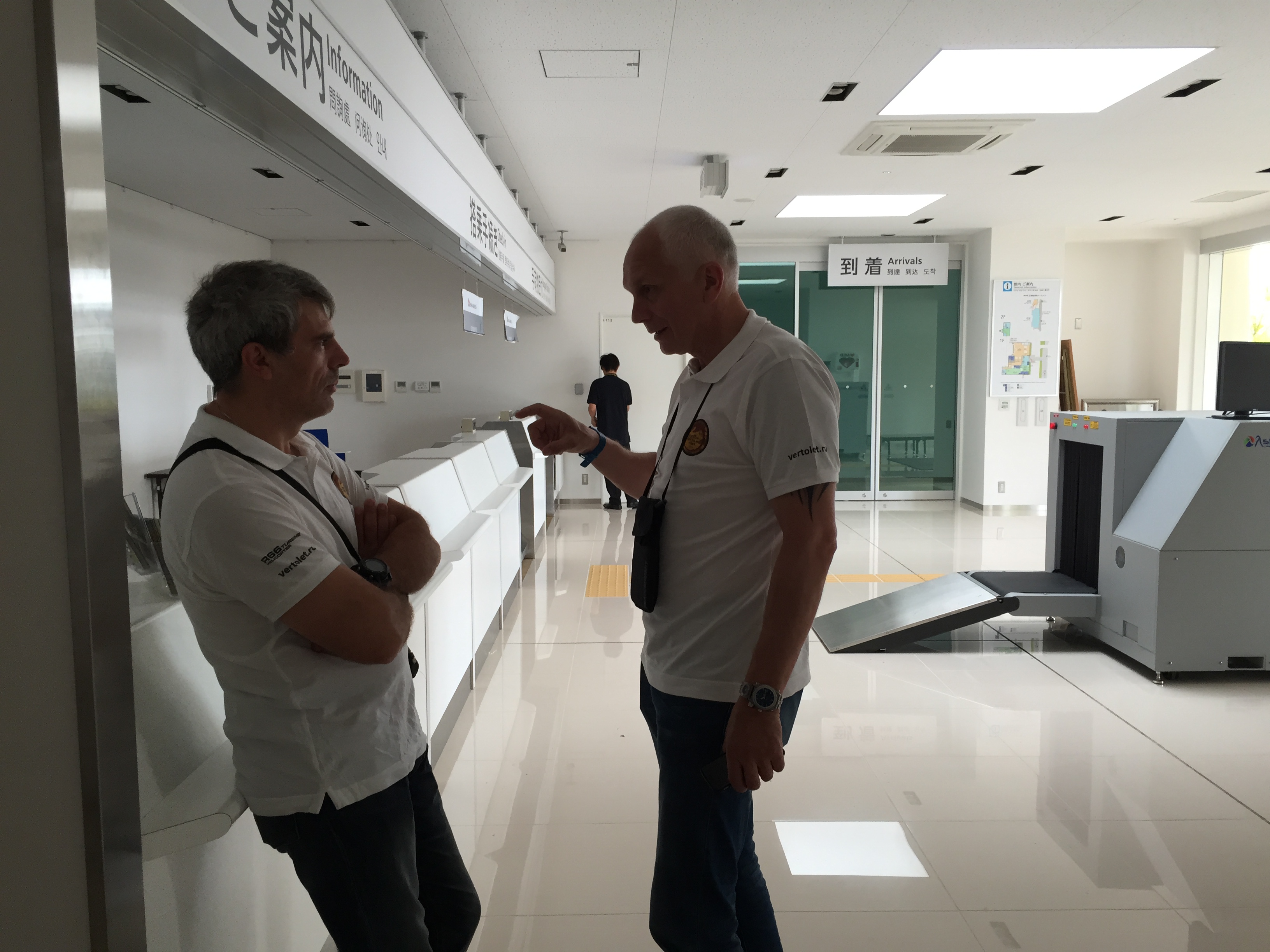 В тиши японского просыпающегося аэродрома медленно шагала фигурка в оранжевой жилетке, поскрипывали колесики чемоданов...И вдруг: