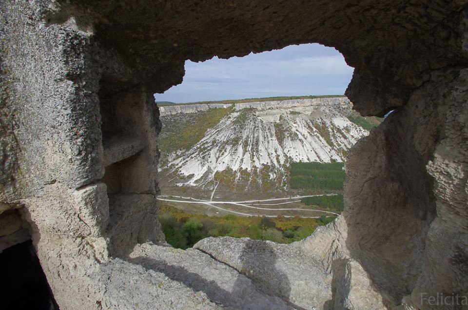 Экскурсия в Чуфут-Кале, прошли улочками древнего города, древними тротуарами из каменных плит, посмотрели погреба зажиточного караима, мавзолей Джаныке-ханым, хозяйственные пещеры.
