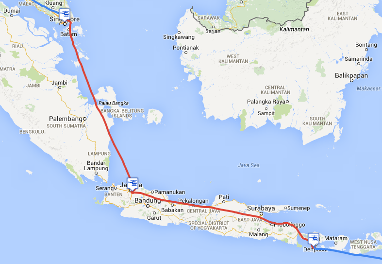 1. Ngurah Rai Airport, WADD (00:39Z) -> Halim Perdanakusuma Airport, WIHH (05:41Z)