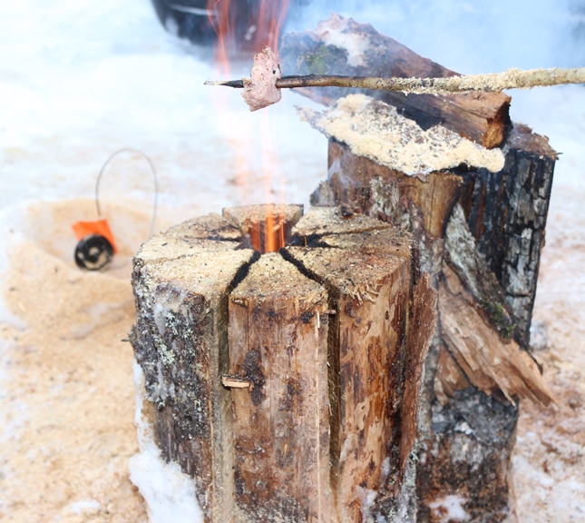 и ни как без приготовлении охотничьих колбасок и печени щуки на открытом огне