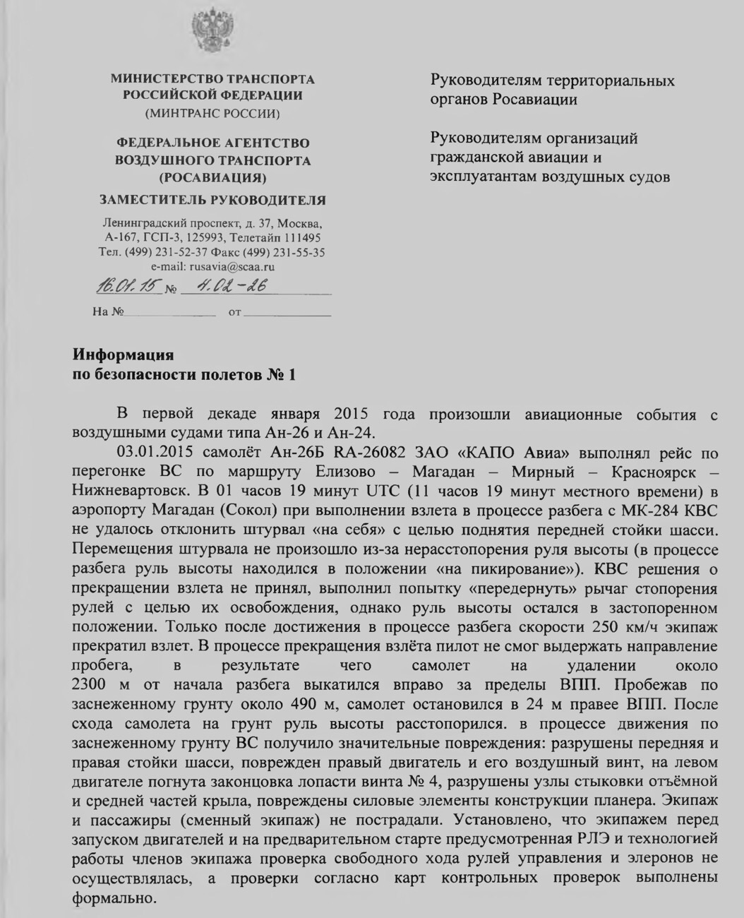 Росавиация выпустила первый в этом году бюллетень по безопасности: http://www.privmtu.ru/safety_flights/info/bp1_2015.pdf