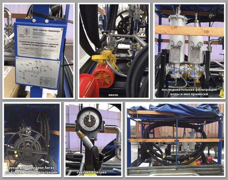 Особенно хочется обратить внимание на то, что слив из изотейнера по бочкам осуществляется с помощью сертифицированного ГОС НИИ ГА Устройства оперативного хранения и раздачи топлива («УЗВС») производства компании Адмикор. При переливе Avgas из изотейнера в бочки мы используем систему последовательной двойной фильтрации, позволяющей адсорбировать влагу и исключать попадание воды.