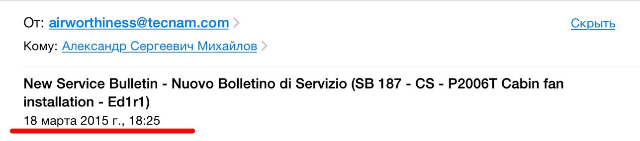 Я к своему глубокому сожалению получаю только то, что принесла сорока на хвосте. Сомневаюсь, а точнее уверен, что даже сегодня не все пилоты и инструкторы, уже многочисленных дилеров в этом городе, знают об этом бюллетене имеющем код 1 (незамедлительно), не говоря уже про летающую мимо пыль. Зачем людей нервировать...rubaga писал(а):Ну не совсем так. Не до любого. Только до того, которое его затронет. Налицо однобокость позиции и эгоизмlt.ak писал(а):он похоже взял жёлтый маркер ... откорректировал шкалу на приборе ... и успокоился ... до следующего письма счастья ...Misha писал(а):Вот и я думаю: чевой-то ЛОДОШНИК такой тревожный? Успокоительного перед сном 15 капель - и спать![]()