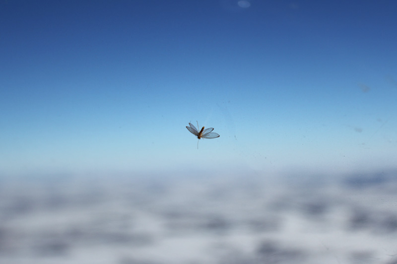 Левцово чем-то напоминает нашу (Питерскую) Ржевку в уменьшенном варианте. Полоса 600 метров асфальта, большое здание, которое сейчас почти не используется, но которое собираются реконструировать, десяток самолетов и плакаты вездесущего ЧелАвиа. Трогательные белые березки по краю перрона и тишина. Заправляемся, расплачиваемся, отзваниваемся по флайт-плану и бегом-бегом вылетаем дальше. Наш любимый 90-й эшелон. Погода до Казани звенит – миллион на миллион. По дороге я развлекаюсь фотографированием Пришельцев. Пришельцы – это такие маленькие то ли мухи, то ли мотыльки, которые незаконными мигрантами прилетели с самолетом когда-то еще из Америки. Мы их считали принадлежностью этого конкретного самолета и не трогали - так они и летали с нами. Где-то в середине полета мы поняли, что проголодались, и схомячили взятые с собой бутерброды. Так вот тихо и мирно долетели до Казани – Караишево. Караишево - удивительный аэродром. Расположен он ровно под третьим разворотом Казанского аэропорта. Управляет полетами на нем тоже Вышка Казани. Полоса – 1200 метров свежайшего асфальта двухлетней выдержки. Правда, на момент нашего прилета от снега было очищено «всего» 700 метров, но нас это, как вы понимаете, не смутило. По прилету нас встретил директор аэродрома Игорь, стал выяснять наши планы дальше. Мы прикинули время и поняли, что засветло в Челябинск уже не успеваем. Я отзвонилась руководителю Калачево: