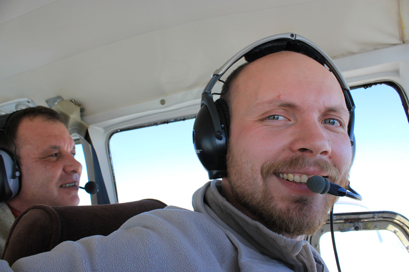 Пришли, глянули и обомлели – за ночь температура упала с плюса в минус при высокой влажности, и весь самолет от носика до хвостика был покрыт тооолстым слоем инея. Печки нет, что делать непонятно. Поскребли ногтем по закрылку, потом по затылку, в результате притащили из автомобиля пару канистр омывайки для стекол, облили самолет и долго старательно счищали получившуюся снежную кашу тряпками с плоскостей. Пока все счистили, пока в зональном нашли планы, пока получили условия – в общем, вылетели с опозданием на час. Заняли 90-й эшелон – там хорошо, спокойно. Включили автопилот и глазели по сторонам, тихо про себя переживая, что возможность дойти за день до Челябинска тает с каждым часовым метром встречного ветра. Прилетели в Левцово. Нас встретили, напоили Кешу топливом, а нас чаем. Забегая вперед, хочу сказать огромное спасибо всем АОНовским аэродромам, на которых мы садились – нас везде ждали (естественно, я отзванивалась или отписывала смс перед вылетом), встречали, оперативно выдавали топливо, поили чаем, давали рекомендации по работе с местными МДП, и ни слова ругательного не говорили про задержки вылетов. Люблю вас, дорогие авиаторы!